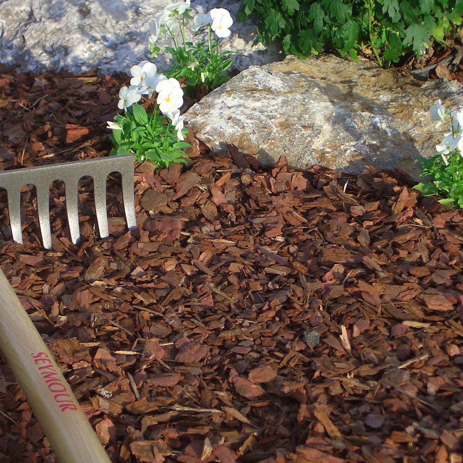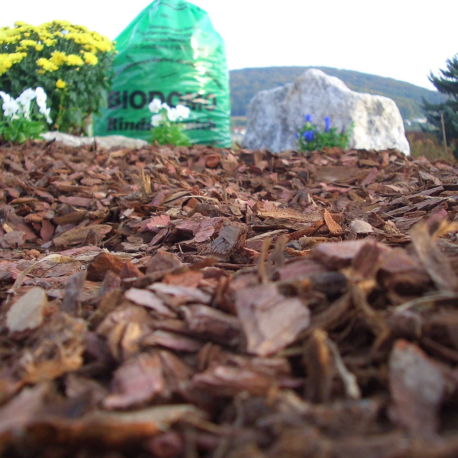 Unser Rindenmulch besteht aus den hochwertigen Nadelhölzern Kiefer, Lärche und Douglasie.