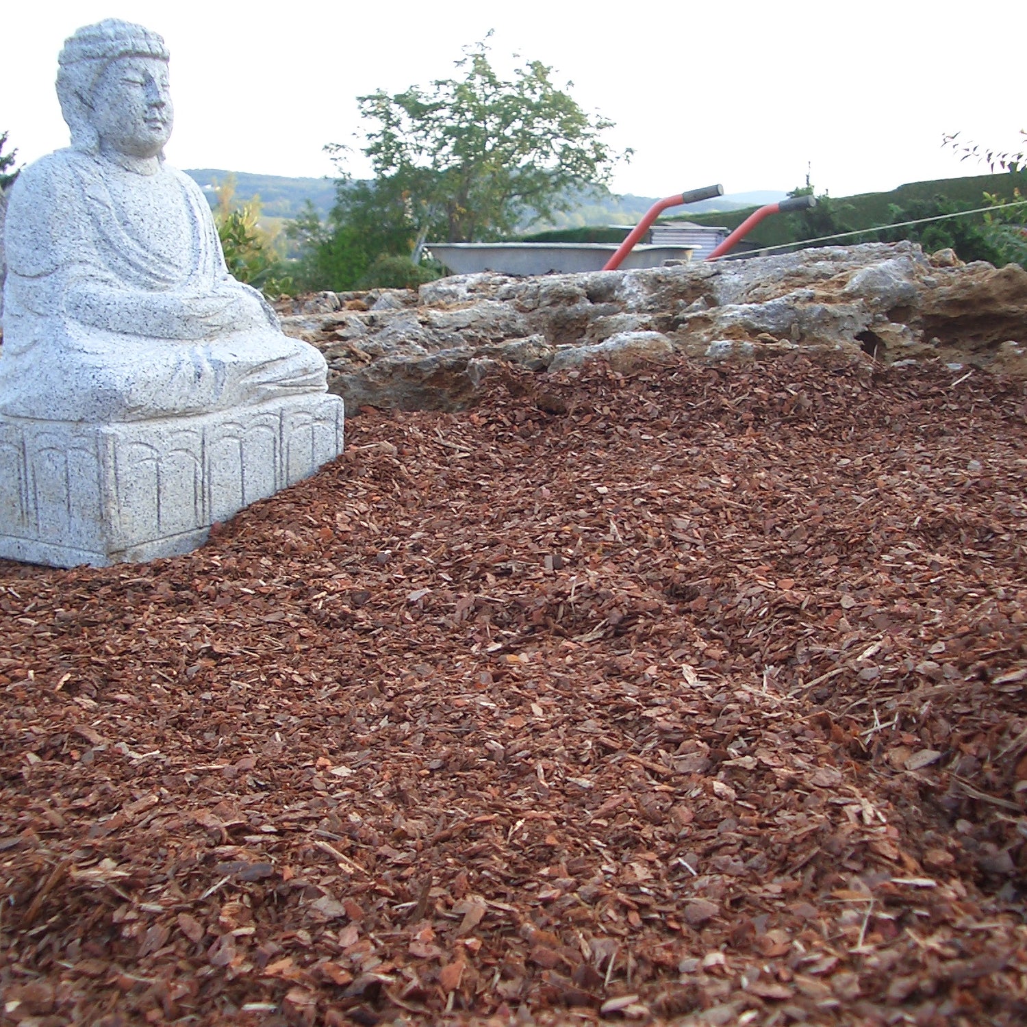 Unser Rindenmulch besteht aus den hochwertigen Nadelhölzern Kiefer, Lärche und Douglasie.